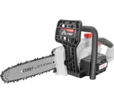 Пила цепная аккумуляторная 20 Вольт (без аккумулятора и зарядного устройства) , поперечное расположение двигателя, скорость движения цепи 6м/с, длина шины 10"(254мм), шаг звеньев/ количество звеньев цепи 3/8"/40. толщина звена 1,1мм, еъмкость масляного бака 170мл, тормоз цепи