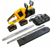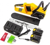 Поставляется без  аккумулятора  и зарядного устройства, бесщеточный мотор, шина и цепь "Oregon" , шина 12"/30 см, цепь 3/8-1,3 , 45 звеньев.Электронный и механический тормоз цепи.