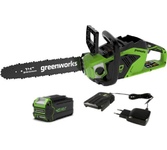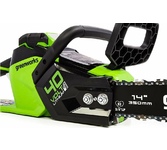 Объем масляного бака, л 0.16, Емкость аккумулятора, А*ч 2.5, Тип двигателя бесщеточный, Длина шины, дюйм/см 12/30, Шаг цепи, дюйм 3/8-1,3, Количество звеньев, шт 45, Ширина обработки, см 3/8-1,3, Диаметр режущего ножа, см 30, Уровень звукового давления, дБ 89, Автоматическая смазка цепи, Электрический тормоз, Напряжение, В 40.