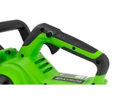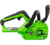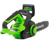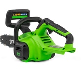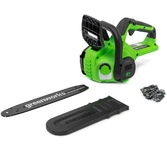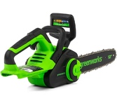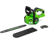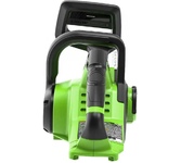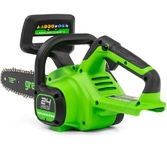 Цепная аккумуляторная пила GreenWorks 24 вольт (модель GD24CS30) - небольшая, легкая (всего 2,6 кг) садовая пила. Благодаря ее компактным размерам она легко помещается в багажнике автомобиля или даже в рюкзаке. Ее надежный бесщеточный двигатель DigiPro сопоставим по мощности с бензиновыми аналогами. Основные характеристики: Тип: аккумуляторная пила Тип пилы: цепная Объем бака: 0.16 л Длина пильной шины: 12" (30 см) Шаг цепи: 3/8" Ширина паза цепи: 1.1 мм Количество звеньев цепи: 46 Вес: 2.6 кг Цвет: черный/зеленый Особенности: Тип двигателя: бесщеточный Прорезиненная рукоятка: да Без ключевая замена и натяжение цепи: да Автоматическая смазка цепи: да Натяжение цепи: без использования инструментов Комплектация: Цепная пила, Руководство по эксплуатации