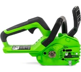 Цепная аккумуляторная пила Greenworks Арт. 2007007, 24V - небольшая, легкая (всего 2,6 кг) садовая пила. Благодаря ее компактным размерам она легко помещается в багажнике автомобиля или даже в рюкзаке. Это отличный выбор для подрезки толстого кустарника или сучков, пиления бревен. Пила также подойдет рыбакам, охотникам и любителям походов. Пила отличается небольшим весом, низким уровнем шума и вибраций, абсолютной экологичностью и простотой эксплуатации.