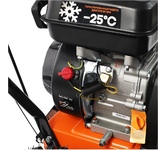 Снегоуборщик Huter SGC 11000CD предназначен для расчистки небольших территорий от снега. Самоходная модель оснащена 4-тактным бензиновым двигателем мощностью 15 л.с. Ширина захвата за один проход составляет 70 сантиметров, шнек с зубцами измельчает плотный снег. Гусеницы обеспечивают надежное сцепление с поверхностью и хорошую проходимость. Поворот желоба регулируется специальным рычагом. Технические характеристики: Мощность двигателя: 15 л.с. Тип двигателя: бензиновый Число тактов: 4 Тип топлива: бензин АИ-92 Способ охлаждения: воздушный Мощность: 11,03 кВт Передачи: 6 вперед / 2 назад Ширина захвата: 70 см Высота захвата: 54 см Электростартер: