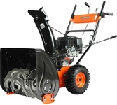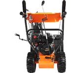 Снегоуборщик Huter SGC 4800EX обеспечивает мощность и производительность. Оснащенный двигателем мощностью 7 л.с, он позволяет убирать тяжелый мокрый снег с большой дальностью выброса. Он оснащен высокоэффективным четырехтактным двигателем. Преимущество этой машины — наличие электрического и ручного стартера. Для быстрого запуска можно использовать стартер от электросети 220 В. Если нет возможности подключиться к розетке, снегоуборщик все равно пригоден к работе с ручным запуском двигателя. Еще одна отличительная особенность модели — ковш высотой 54 см. Он позволяет убирать высокие пласты снега и эффективно очищать территорию за малое количество проходов. Ширина ковша — 68 см. Для удобства уборки в сумерках или условиях плохой освещенности доступна фара. Элементы управления удобно расположены около рукояток, что упрощает работу. Зимние шины обеспечивают хорошее сцепление на снегу и льду. Количество скоростей для движения вперед — пять, назад — две. Технические характеристики: