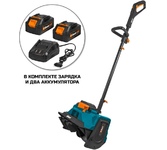 Снегоуборщик аккумуляторный DEKO ST212-5, 20В, 2*5.0Ач предназначен для уборки снега на участках, придомовых территориях и для расчистки пешеходных зон в частных хозяйствах. Аккумулятор, поставляемый в комплекте, обладает повышенной токоотдачей. Снегоуборщик поставляется в частично разобранном виде: Корпус с двигателем - 1 шт Верхняя рукоятка - 1 шт Нижняя рукоятка - 1 шт Дополнительная рукоятка - 1 шт АКБ - 2 шт В комплекте: Зарядное устройство - 1 шт Руководство по эксплуатации - 1 шт Технические характеристики: Емкость АКБ: 5000 Мач Рабочая ширина: 254 мм Рабочая высота: 160 мм Макс. дальность выброса: до 6 м Число оборотов: 2800 об/мин