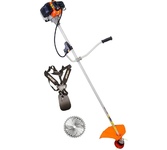 Номинальная мощность - 2500Вт. Объем двигателя - 52см?. Праймер - есть. Тип двигателя - двухтактный. Число оборотов - 8000об/мин. Тип ручки - велосипедная. Тип штанги - прямая. Ширина скашивания - 420мм. Приводной вал - жесткий.