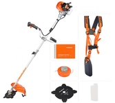 Макс. мощность, л.с. 2,5, Ширина захвата, см 42, Объем двигателя, см3-43, Объем бака, л 1, Крепление М10х1,25 LH, Частота вращения, об/мин 8 000, Ранцевый ремень, Легкий старт, Тактность двигателя 2-х тактный, Диаметр лески, мм 3, Пильный диск 40Т+3Т, Тип рукоятки U-образная (велосипедная), Жесткий вал, Механизм сцепления центробежный, Диаметр ножа, см 25,5, Зажигание электронное, Антивибрационная система.