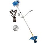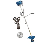 Объем 63см3; мощность 3,7кВт(4,9л.с.); ширина (нож/ леска) 254/400мм, двигатель 2-х такт с воздушным охлаждением ручной стартер, полуавтоматическая подача лески. Комплект: двигатель, разъёмная штанга, катушка, 3-х лопаст.нож, ремень плеч., налад комплек