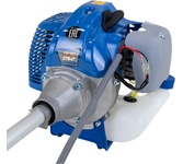 Объем 52см3; мощность 3,0кВт(4,1л.с.); ширина (нож/ леска) 254/400мм, двигатель 2-х такт с воздушным охлаждением ручной стартер, полуавтоматическая подача лески. Комплект: двигатель, разъёмная штанга, катушка, 3-х лопаст.нож, ремень плеч., налад комплек