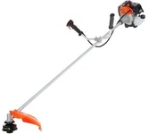 Потребляемая мощность (л.с.) 3.3. Объем двигателя (м3) 56. Тип двигателя Двухтактный. Объем топливного бака (л) 1.2. Скорость вращения (об/мин) 9000. Ширина кошения нож/леска (мм) 255/440. Диаметр лески (мм) 2.4. Регулируемая рукоять велосипедного типа Да. Легкий доступ к воздушному фильтру Да. Защита топливного бака Да. Работа ножом и леской Да Комплектация Шпуля Да. Канистра для топливной смеси Да. Наплечный ремень Да. Набор инструментов Да. Кожух Да. Трехлопастной нож Да.