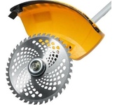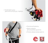 Бензиновый триммер предназначен для скашивания травы и молодого кустарника на открытых пространствах. Оптимально использование при выкашивании травы в труднодоступных местах: вдоль кромок дорожек и стен строений, а также вокруг деревьев.Тип двигателя бензиновый. Тактность двигателя двухтактный. Мощность 1.8 л. с.. Максимальный диаметр лески 3 мм. Ширина скашивания леской 420 мм. Ширина скашивания ножом 255 мм. Крепление шпули M10 x 1.25 LH. Режущий элемент нож, леска. Тип топлива Смесь АИ-92 и масла. Тип ручки велосипедная. Тип катушки полуавтоматическая. Посадочный диаметр для установки диска 25.4 мм. Объем топливного бака 0.7 л. Частота вращения шпинделя 9500 об/мин. Уровень звукового давления 110 дБ. Потребление топлива при максимальной нагрузке 1.1 л/ч. Тип штанги неразъемная.