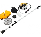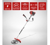 Тип двигателя: бензиновый. Расположение двигателя: верхнее. Форма штанги: прямая. Мощность двигателя (Вт): 2200. Объем двигателя: 51.7. Кол-во тактов двигателя: двухтактный. Емкость топливного бака: 1. Режущий элемент: леска и нож. Диаметр круга стрижки: 38. Диаметр используемой лески: 3. Размер используемого ножа: 255. Тип крепления триммера: плечевой ремень. Вес товара: 7.2. Комплект поставки: Триммер бензиновый, Ручка, Штанга, Режущий диск, катушка с леской, Защитный щиток, Наплечный ремень.. Особенности: Прямая неразъемная штанга с эргономичной «велосипедной» рукояткой. Литое крепление «велосипедной» рукоятки.. Мощность двигателя (л.с.): 3. Обороты двигателя: 7000. Материал ножа: металл. Тип косильной катушки: полуавтоматическая. Форма рукоятки: U-образная. Тип штанги: неразборная штанга. Посадочный диаметр диска: 25.4. Габариты упаковки (ед) ДхШхВ: 1.6x0.45x0.31. Вес упаковки (ед): 9.8. Страна производства: Китай. Гарантия: 12 мес.. Двигатель: бензиновый, 3 л.с., двухтактный, расположение верхнее. Вес: 7