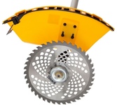 Бензиновый триммер Denzel DR-52S 96276 с двигателем объемом 52 см3 и разъемной штангой, состоит из 2 частей. Используется для ухода за газоном, скашивания травы различных типов, в том числе с жесткими стеблями (полынь, крапива, лебеда). Триммер эффективен на сложных участках: вдоль стен, в ямках и на возвышенностях, вокруг деревьев. Две режущие насадки — трехлопастный нож и катушка с леской — вращаются со скоростью 9500 об/мин, обеспечивая ширину скашивания 25,5 и 42 см. Эффективную работу инструмента обеспечивает двухтактный двигатель мощностью 3 л.с. При этом триммер экономично расходует топливо, поэтому часто заправлять его не придется.ПреимуществаВысокий ресурс — усиленный стартер изготовлен из металлических деталей, цилиндр двигателя покрыт пористым хромом и хонингован.Стабильная работа — шлицевое соединение вала с редуктором выполнено из высокопрочного металла и выдерживает значительные нагрузки.