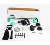 Технические характеристики GreenCut 20: Скорость вращения без нагрузки: 10000 об/мин Диаметр резки: 150 мм Напряжение батареи: 20 В Емкость батареи: 2000 мАч Время зарядки: 120 мин Время работы без нагрузки: 60-80 мин Длина штанги: 90-120 см Технические характеристики GreenSaw 20 Extra Power: Тип АКБ: Li-Ion Напряжение АКБ: 20 В Длина шины: 152 мм Скорость вращения цепи: 5 м/с Двигатель: щеточный Количество скоростных режимов: 1 Технические характеристики ZKBL20: Напряжение АКБ: 20В Емкость АКБ: 4000мАч Количество АКБ в комплекте: 1 Объем воздуха: 2,7м3/мин Скорость воздуха: 60м/с