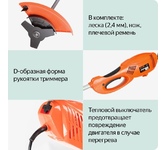 Мощность двигателя, кВт 1,1, Ширина захвата, см 46, Крепление М10х1,25 LH, Уровень звукового давления, дБ 96, Частота вращения, об/мин 7 500, Ранцевый ремень, Легкий старт, Ширина скашивания, см 43/23, Диаметр лески, мм 2,4, Разборная штанга, Пильный диск 3Т, Тип рукоятки D, Диаметр ножа, см 23, Антивибрационная система, Катушка полуавтоматическая.