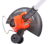 Ширина скашивания травы, мм 300 Ширина скашивания леской, мм 300 Ширина скашивания ножом, мм нет Диаметр режущей лески, мм 1,6 Рекомендуемая площадь обработки, м? 300 Тип рукоятки D-образная Тип штанги регулируемая по высоте Регулировка высоты ручки есть Приводной вал без приводного вала Форма штанги прямая Режущий элемент леска Тип ремня нет Расположение двигателя нижнее Частота вращения, об/мин 7000 Тип двигателя коллекторный Напряжение аккумулятора, В 40 Емкость аккумулятора, А*ч 4 Тип аккумулятора Li-ion Время работы на одном заряде до 50 минут Время зарядки аккумулятора до 2 часов Аккумулятор и ЗУ в комплекте один АКБ и ЗУ Уровень шума при работе, дБ 96