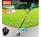 Тип двигателя: электрический. Расположение двигателя: верхнее. Форма штанги: прямая. Мощность двигателя (Вт): 1800. Тип электропитания: от электросети. Режущий элемент: леска и нож. Диаметр круга стрижки: 45. Диаметр используемой лески: 2.5. Тип крепления триммера: плечевой ремень. Вес товара: 7. Комплект поставки: Защитный щиток Плечевой ремень Винт (4шт) Шестигранный ключ (2шт), комбинированный ключ Трех лопастной нож Рукоятка 1 шт Нож для обрезки лески 1 шт Инструкция по эксплуатации Инструкция по безопасности. Обороты двигателя: 7500. Форма рукоятки: U-образная. Антивибрационная система: отсутствует. Тип штанги: неразборная штанга. Габариты упаковки (ед) ДхШхВ: 1.72x0.22x0.12. Вес упаковки (ед): 7.4. Страна производства: Китай. Гарантия: 14 мес.. Режущая система: леска и нож. Вес: 7 кг. Двигатель: электрический, расположение верхнее. Тип электропитания: от электросети