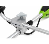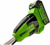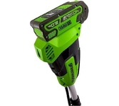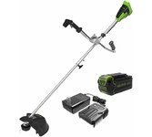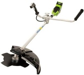 GreenWorks GD40BCB, 40V, 40,6 см, бесщеточный, с АКБ 4АЧ и ЗУ Триммер аккумуляторный (2105707UB) Напряжение 40 Volt Вес 7.3 кг Тип двигателя Бесщёточный Максимальная скорость вращения 6500 об/мин Диаметр лески 2 мм Ширина скашивания, см 40 см Используемое зарядное устройство, артикул: 29417 Гарантия 3 года Уровень шума 96 дБ Емкость, Ампер/час 4 А/ч Тип аккумулятора Li-ion Габариты упаковки 92/24,5/18,5 Ширина 280 мм Высота 130 мм Длина 805 мм Тип двигателя Бесщёточный Подача лески Автоматическая Велосипедная ручка Да Функция кромкореза Нет Материал вала Сталь Защитный кожух Да Модули в комплекте Пильный диск Диск-Нож в комплекте Да Вращающееся основание Нет Расположение двигателя Верхнее