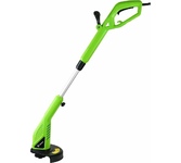 Электрический триммер Huter GET-500 - предназначен для кошения мягкой молодой травы на небольшой площади, ширина скоса 25 сантиметра. Электрический двигатель расположен внизу, что делает работу с электротриммером легче. Кабель для подключения к электросети имеет длинну 30 сантиметров. Мягкая накладка на основной рукоятке позволяет удобно держать инструмент. Подойдёт для работы в саду или на приусадебном участке. Технические характеристики: Мощность: 500 Вт Тип двигателя: электрический Напряжение: 220 В Частота: 50 Гц Мощность двигателя: 0,68 л.с. Тип штанги: разъемная Тип режущего инструмента: леска Диаметр лески: 1,2 мм Ширина скашивания: 250 мм Обороты д