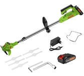 Технические характеристики: Тип аккумулятора: Li-Ion Число оборотов: 11000 об/мин Диаметр резки: 150 мм Тип двигателя: щеточный Емкость АКБ: 2,0 Ач Напряжение АКБ: 12 В Триммер поставляется в частично собранном виде: Триммер - 1 шт Защитный кожух - 1 шт В комплекте: Полуавтоматическая катушка с леской - 1 шт АКБ - 2 шт Зарядное устройство - 1 шт Режущий диск - 1 шт Металлический нож - 1 шт Пластиковые ножи - 5 шт Триммерная головка - 1 шт Шестигранный ключ - 1 шт Гаечный ключ - 1 шт Скоба - 1 шт Крепежный набор (винт - 1 шт, шайба - 1 шт, гайка - 2 шт) - 1 шт Руководство по эксплуатации - 1 шт