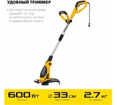 Мощность, Вт 600. Частота вращения шпинделя, об/мин 9000. Режущий элемент леска. Ширина скашивания (леска), см 33. Ширина скашивания (нож), см -. Толщина лески, мм 1.4. Тип катушки автоматическая. Тип рукоятки D-образная. Тип штанги телескопическая. Ремень нет. Напряжение питания, В/Гц 230 / 50. Габариты, см 88x26x11. Масса изделия, кг 2.9. Масса в упаковке, кг 3.7.