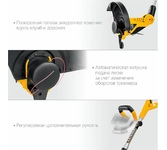 Мощность двигателя, кВт 0,5, Ширина захвата, см 28, Частота вращения, об/мин 10 000, Диаметр лески, мм 1,6-2,0, Регулируемая штанга, Тип рукоятки D.
