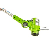 Ширина скашивания травы, мм 300 Ширина скашивания леской, мм 300 Диаметр режущей лески, мм 1,6 Рекомендуемая площадь обработки, м² 150 Частота вращения, об/мин 0-8500 Напряжение аккумулятора, В 21 Емкость аккумулятора, А*ч 1,5 Тип аккумулятора Li-ion Время работы на одном заряде до 25 минут Время зарядки аккумулятора до 1,5 часов Аккумулятор и ЗУ в комплекте один АКБ и ЗУ Диаметр штанги, мм 25 Тип посадки катушки Сменная шпулька Тип рукоятки D-образная Тип штанги регулируемая по высоте Регулировка высоты ручки есть Приводной вал без приводного вала Форма штанги прямая Режущий элемент леска Тип двигателя коллекторный Тип ремня нет Расположение двигателя нижнее