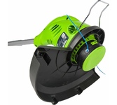 Тип двигателя электрический. Мощность 1100 Вт. Напряжение 220 В. Максимальный диаметр лески 2 мм. Крепление шпули M10 LH. Режущий элемент нож, леска. Тип катушки автоматическая. Особенности верхнее расположение двигателя.