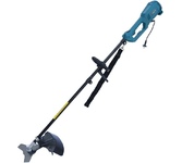 Потребляемая мощность (л.с.) 2300. Тип двигателя Электрический. Скорость вращения (об/мин) 6400. Ширина кошения нож/леска (мм) 400. Диаметр лески (мм) 2.4. Регулируемая рукоять велосипедного типа Да. Работа ножом и леской Да. Комплектация Шпуля Да. Наплечный ремень Да. Набор инструментов Да. Кожух Да. Трехлопастной нож Да.