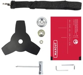 Напряжение: 230 - 240 В. Мощность: 1250 Вт .. Число оборотов: 7500 об/мин Ширина скашивания (леска): 380 мм . Ширина скашивания (3Т нож / 40Т диск): 230 мм . Вал: складной . Тип штанги: прямая .