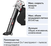 Частота вращения, об/мин 15000, Объем воздуха, м3/час 720, Объем травосборника, л 45, Мощность двигателя, кВт 2, Скорость воздуха, м/сек 75, Функции обдув, измельчение, всасывание,