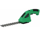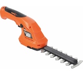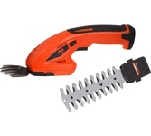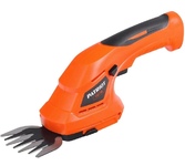 Частота ходов: 1100. Длина основного ножа для кустов: 65. Ширина ножа для травы: 80. Тип электропитания: от аккумулятора. Емкость аккумулятора: 1.5. Напряжение аккумулятора: 3.6. Тип аккумулятора: Li-Ion. Продолжительность работы от аккумулятора: 40. Время зарядки, около: 50. Индикатор заряда батареи: есть. Антиблокировочная система: есть. Защитное устройство ножа: нет. Защитный тормоз: нет. Ножи с алмазной заточкой: нет. Смена ножей без инструмента: есть. Комплект ножниц для травы и кустов: нет. Длина инструмента: 320. Высота инструмента: 120. Вес товара: 0.7. Комплект поставки: Аккумуляторные ножницы-кусторез; насадка для травы; зарядное устройство; инструкция.. Аккумулятор в комплекте: есть. Зарядное устройство в комплекте: есть. Страна производства: Китай. Гарантия: 24 мес.. Частота ходов: 1100 ход/мин. Ширина ножа для травы: 80 мм. Длина основного ножа для кустов: 65 мм. Аккумулятор: Li-Ion, 3.6 В; 1.5 Ач. Электропитание: от аккумулятора. Вес: 0.7 кг
