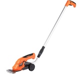 Частота ходов: 1100. Длина основного ножа для кустов: 170. Ширина ножа для травы: 90. Расстояние между ножами: 8. Тип электропитания: от аккумулятора. Емкость аккумулятора: 1.5. Напряжение аккумулятора: 7.2. Тип аккумулятора: Li-Ion. Продолжительность работы от аккумулятора: 20. Время зарядки, около: 40. Индикатор заряда батареи: есть. Антиблокировочная система: есть. Защитное устройство ножа: нет. Защитный тормоз: нет. Ножи с алмазной заточкой: нет. Смена ножей без инструмента: есть. Комплект ножниц для травы и кустов: есть. Особенности: Опорные колеса.. Длина инструмента: 155. Высота инструмента: 980. Вес товара: 0.42. Комплект поставки: Ножницы-кусторезы аккумуляторные; насадка для травы; насадка кусторез; телескопическая рукоятка; аккумулятор; кабель зарядки; инструкция.. Аккумулятор в комплекте: есть. Зарядное устройство в комплекте: есть. Габариты упаковки (ед) ДхШхВ: 0.98x0.15x0.105. Вес упаковки (ед): 2. Страна производства: Китай. Гарантия: 24 мес.. Длина основного ножа для кустов: 170 мм. Вес: 0.42