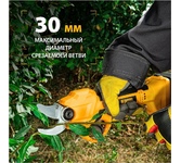 Аккумуляторный секатор Denzel CP-30 с батареей 18В Li-Ion предназначен для срезания ветвей толщиной до 30 мм. Станет незаменимым помощником для владельцев загородных домов, дач и плодовых питомников. Компактный бесщеточный электродвигатель обеспечивает эффективную работу инструмента. Секатор работает от аккумулятора, поэтому будет полезен при работе в труднодоступных местах и отдаленных участках сада.
