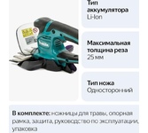 Вид ножницы. Тип аккумуляторный. Поворотная рукоятка нет. Телескопическая рукоятка нет. Число ходов, 1/мин 2500. Количество аккумуляторов в комплекте нет. Напряжение аккумулятора, В 10.8. Габариты без упаковки, мм 329х117х131. Вес нетто, кг 1,4. Тип аккумулятора Li-lon. Время работы на одном заряде, мин 90.
