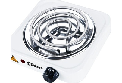 Мощность 1000 Вт, 1 конфорка 145 мм, антипригарное эмалевое покрытие, спиральный нагревательный элемент, регулируемый термостат, индикатор работы, цвет корпуса - белый