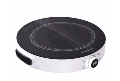 2200 Вт, индукционный нагревательный элемент, LED-дисплей, сенсорное и механическое управление, варочная поверхность из стеклокерамики, индикатор работы, регулировка мощности с шагом 100 Вт, функция таймера, блокировка панели управления, отсрочка старта. Диаметр конфорки 180 мм. Цвет корпуса: белый.