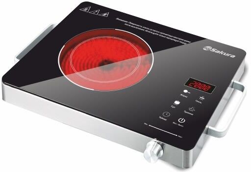 Плитка настольная с инфракрасным нагревом, 1 конфорка диаметр.200мм, макс. мощность 2000Вт, варочная поверхность из жаропрочного полированного стекла 280*360мм, надежный металлический корпус, сенсорное/механическое управление, 11 уровней мощности (100-2000Вт), регулировка температуры 60-700°С, таймер на 3 часа, длина шнура: 1,3м, защита от прегрева, яркий дисплей, удобные ручки для переноски плиты. Автоматические режимы: тушение, жарка, гриль, суп. Подходит для любой посуды с плоским дном. Макс.нагрузка: 10 кг. Цвет корпуса: черный/серебр. Размер прибора: 280*360*65мм.