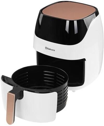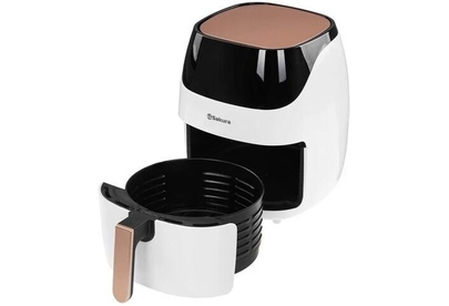 Аэрогриль, 1500 Вт, чаша с антипригарным покрытием Teflon 5,0 л, таймер на 60 минут, регулировка температуры 80-200С, сенсорное управление, LED дисплей, готовит без масла или с минимальным его использованием. Автоматическое отключение питания при извлечении корзины. 8 предустановленных программ меню. Подходит для всех блюд, которые готовятся в духовке. Размер устройства без упаковки: 300?300?340 мм. Длина шнура: 1м.