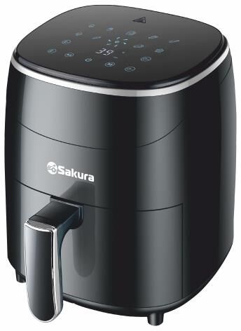 Аэрогриль, 1200 Вт, чаша с антипригарным покрытием Teflon 3,5 л, таймер на 60 минут, регулировка температуры 80-200С, сенсорное управление, LED дисплей, готовит без масла или с минимальным его использованием. Автоматическое отключение питания при извлечении корзины. 9 предустановленных программ меню. Подходит для всех блюд, которые готовятся в духовке. Размер устройства без коробки: 260?260?295 мм. Цв.черный. Длина шнура: 0.9м.