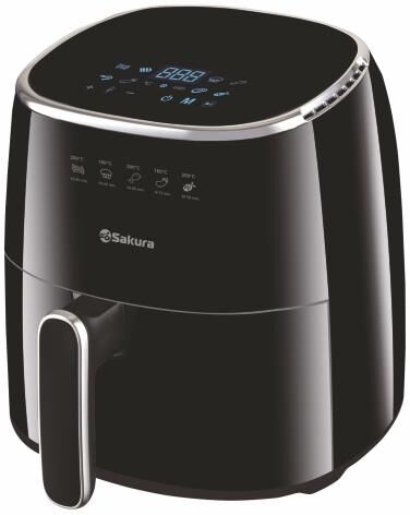 1500 Вт, чаша с антипригарным покрытием 5,0 л, 8 программ приготовления, регулировка температуры от 80 °C до 200 °C, таймер на 60 мин, LED дисплей, сенсорное управление, автоматическое отключение питания при извлечении чаши. Размер устройства в упаковке: 310х310х332 мм. Цвет черный. Длина шнура 120 см. Материал корпуса: пластик. Отключение при открывании.