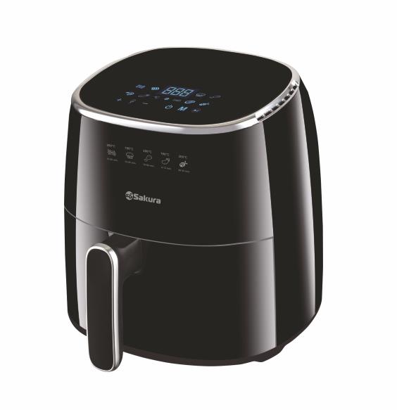 1500 Вт, чаша с антипригарным покрытием 5,0 л, 8 программ приготовления, регулировка температуры от 80 °C до 200 °C, таймер на 60 мин, LED дисплей, сенсорное управление, автоматическое отключение питания при извлечении чаши. Размер устройства в упаковке: 310х310х332 мм. Цвет черный. Длина шнура 120 см. Материал корпуса: пластик. Отключение при открывании.