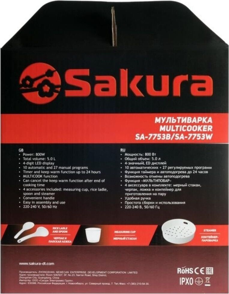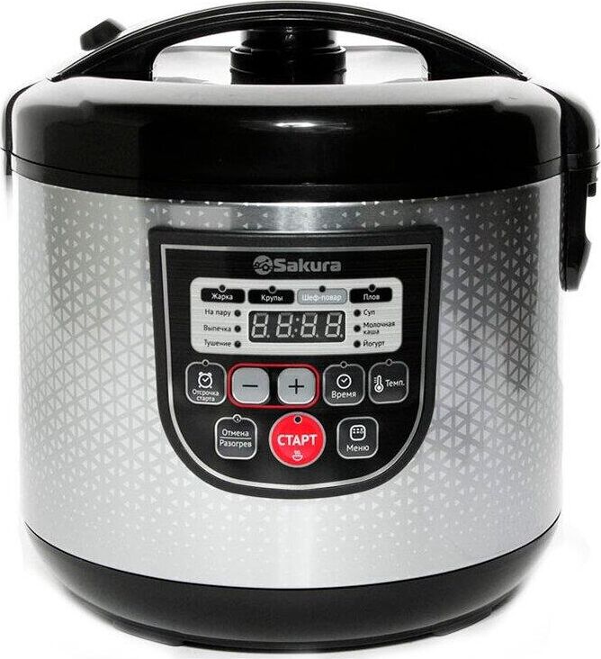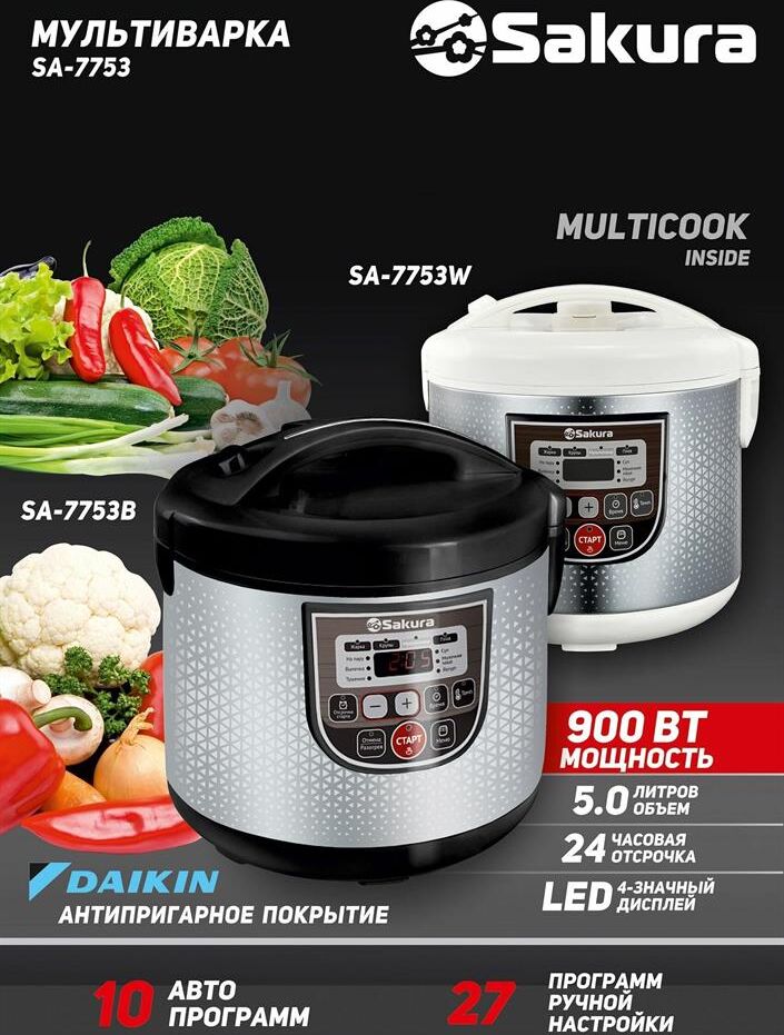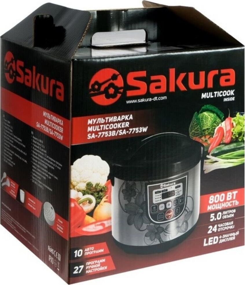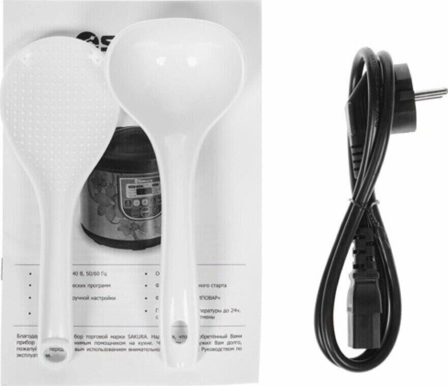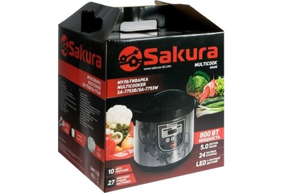 5 л, 800 Вт, функция "Мультиповар", 10 автоматических и 27 программ ручной настройки, LED дисплей, отсрочка старта до 24 часов, функция поддержания температуры до 24 часов, в комплекте 4 аксессуара (мерный стакан, черпак, ложка и контейнер для приготовле