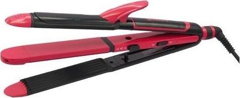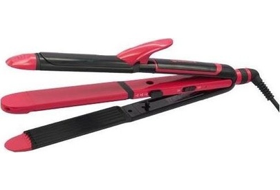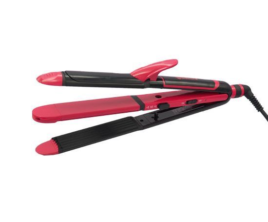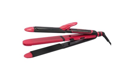 стайлер 3 в 1: выпрямитель, плойка и плойка-гофре; 45 Вт, керамическое покрытие, нагрев до 200°С, пластины 30х105 мм, диаметр плойки 30 мм, ненагревающийся наконечник, световой индикатор работы, термоизоляционная ручка с рычажком, шнур питания 1,9 м