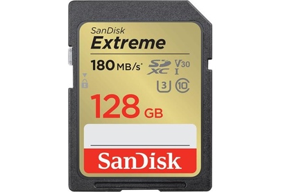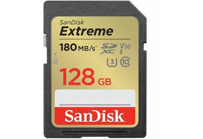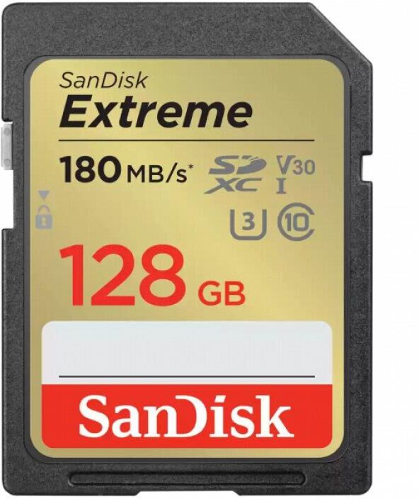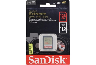 Карта памяти SanDisk Extreme SD UHS I 128GB Card for 4K Video for DSLR and Mirrorless Cameras 180MB/s Read & 90MB/s Write