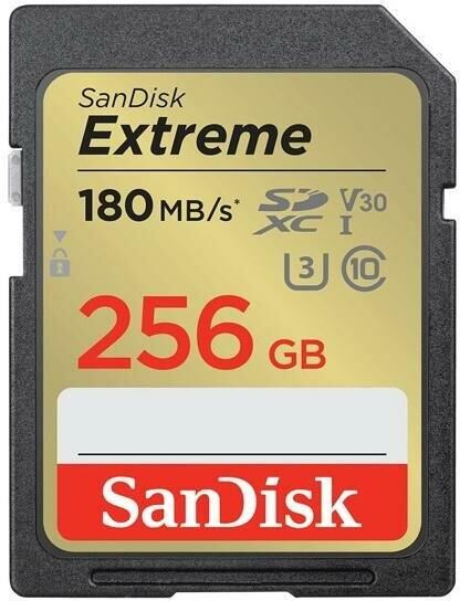 SANDISK Карта памяти Extreme SD UHS I 256GB Card for 4K Video for DSLR and Mirrorless Cameras 180MB/