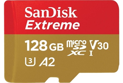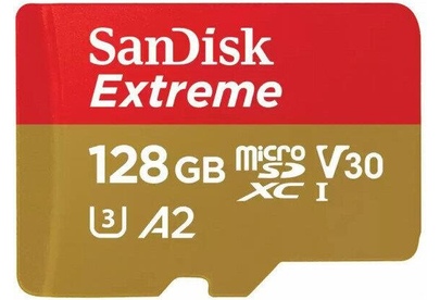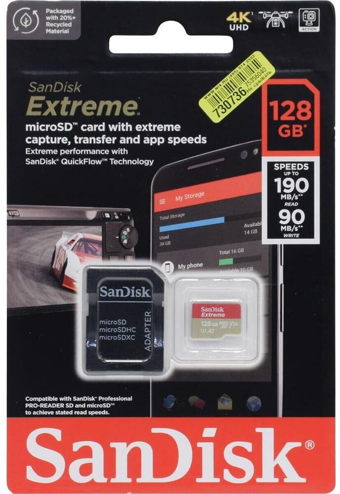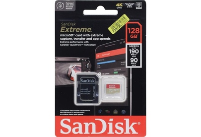 SANDISK Micro SecureDigital 128GB Extreme 128 ГБ, 190 МБ/с, Class 10, SDSQXAA-128G-GN6MA, 1 шт., пер