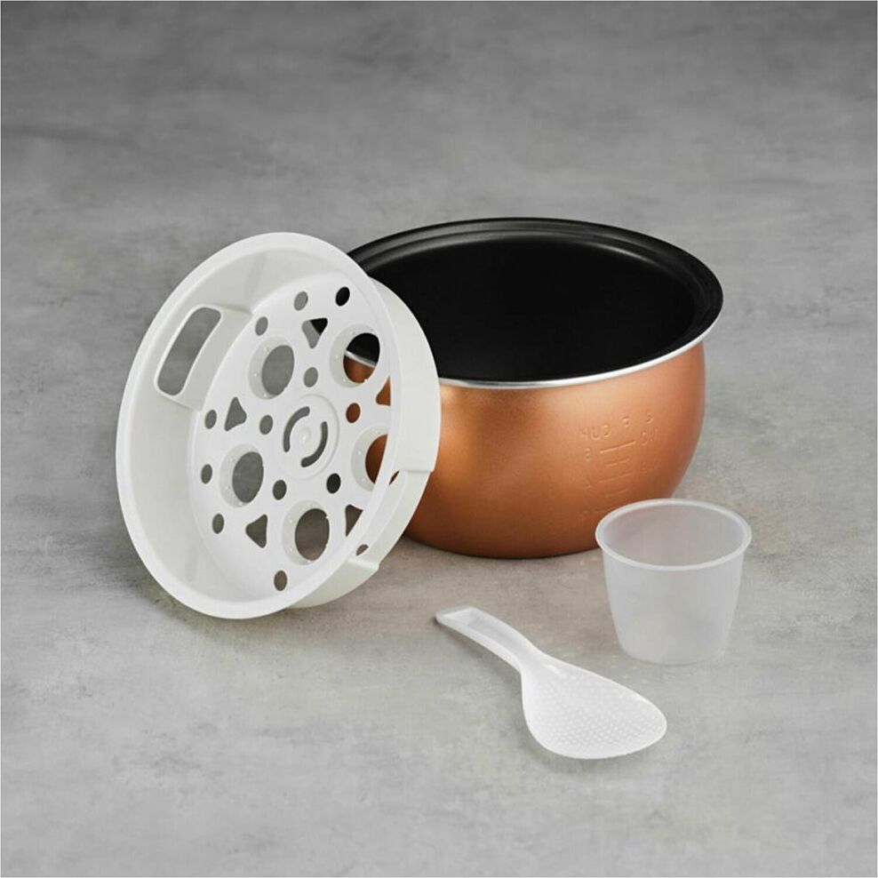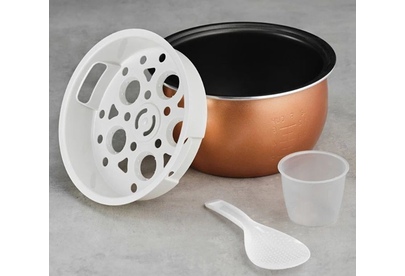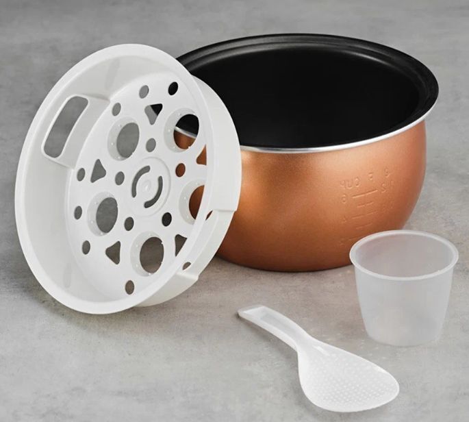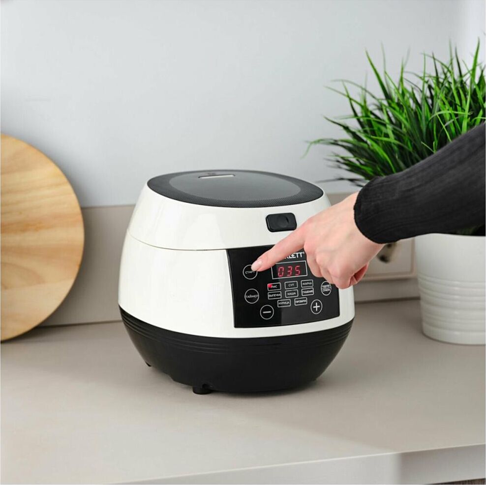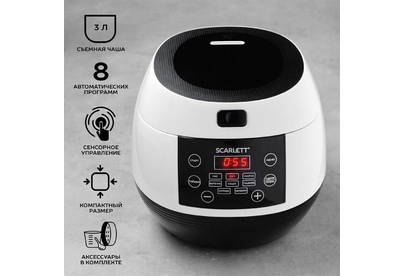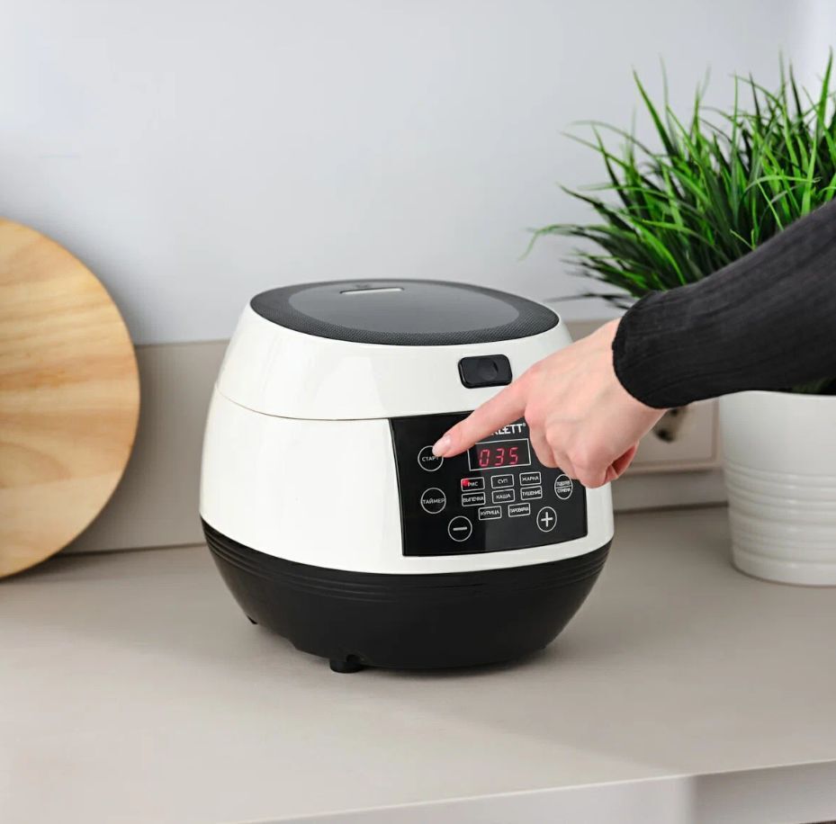 11 самых необходимых программ. Чаша с 2-х слойным антипригарным покрытием и стальной корпус из собственной марки стали Steel Tech. Зеленая подсветка экрана - комфортная для глаз и более заметная в темноте. Мощность, Вт: 900. Количество программ: 11. Функция подогрева: Да. Съёмная чаша: Чаша с 2х-слойным антипригарным покрытием, внутри - выгравированная шкала. Объем чаши, л: 5. Книга рецептов на русском языке: Да. Аксессуары в комплекте: Ложка для перемешивания, мерный стакан, емкость для приготовления на пару. Длина электрошнура, м: 1.2. Особенности модели: – Встроенный клапан выхода пара. – Отсрочка старта - 24 часа. – Программа Подогрев – 24 часа. – Функция Отмена программы. – Изменение времени программы.
