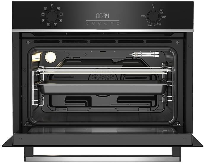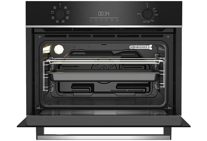 Размеры без упаковки (ВхШхГ), см - 45,5x59,4x56,7. Электрический духовой шкаф; 8 режимов; LED дисплей; утапливаемые поворотные переключатели; система очистки паром; металлические направляющие; объем - 48л; 3 стекла дверцы; 1 решетка; 1 противень; Цвет: Нержавеющая сталь; Материал панели управления: Металл + Стекло
