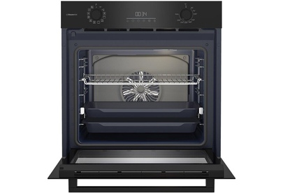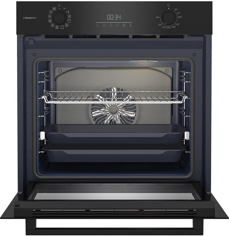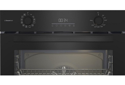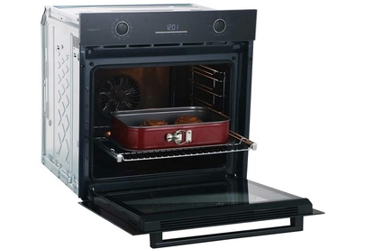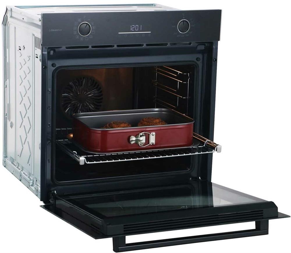 Электрический духовой шкаф; 12 режимов; Приготовление с паром; LED дисплей; утапливаемые поворотные переключатели; каталитическая очистка (задняя панель); телескопические направляющие на одном уровне; объем - 72л; 2 стекла дверцы; 1 решетка; 1 противень; 1 глубокий противень; Плавное закрытие дверцы SoftClose; Цвет: Черный; Материал панели управления: Стекло