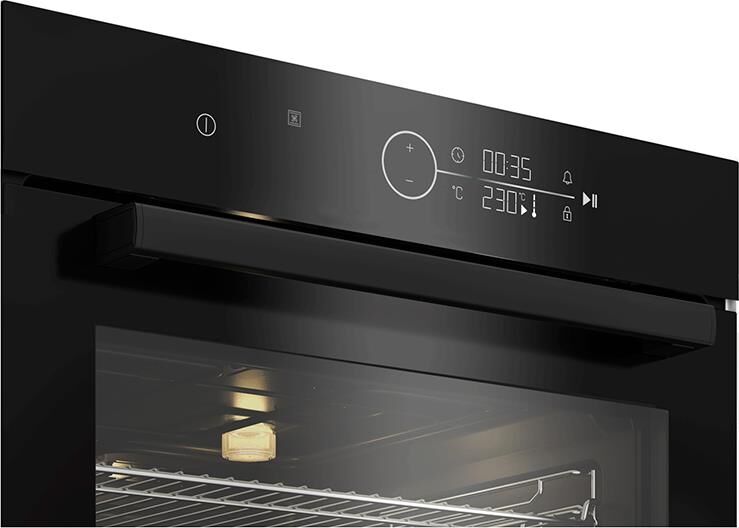 Электрический духовой шкаф; 13 режимов: 3D приготовление, разморозка, гриль, выпечка хлеба, гриль + вентилятор, верхний и нижний нагрев, конвекция, нижний нагрев, вентиляционный нагрев, малый гриль, нагрев+вентилятор (экономичный режим), поддержание тепла, пицца; LED дисплей; полностью сенсорное управление; каталитическая очистка; нано покрытие на внутреннем стекле дверцы; 3 стекла в дверце; Блокировка дисплея; телескопические направляющие на 1 уровне; плавное закрытие дверцы; объем - 72л; 1 решетка; 1 противень; 1 глубокий противень; Цвет: Черный; Максимальная потребляемая мощность, Вт 3300; Провод с вилкой 1,4 м.